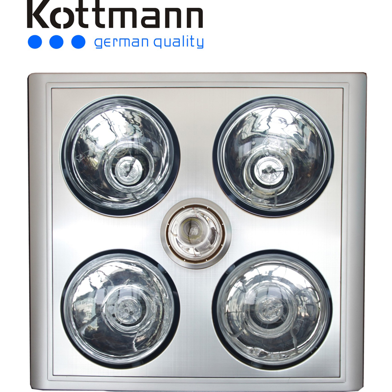 Đèn sưởi nhà tắm Kottmann 4 bóng không chói mắt, không đốt cháy oxy, bóng đèn có màu bạc bởi vậy đã hạn chế việc gây chói mắt so với các dòng khác.