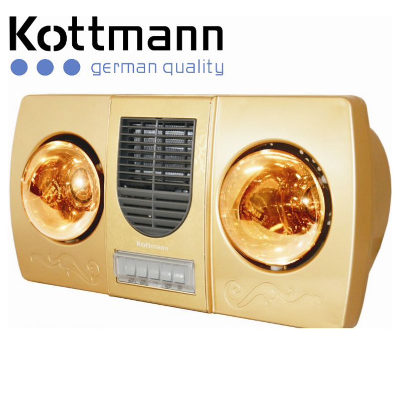 Đèn sưởi 2 bóng vàng Kottmann với thiết kế kiện đại, làm ấm nhanh