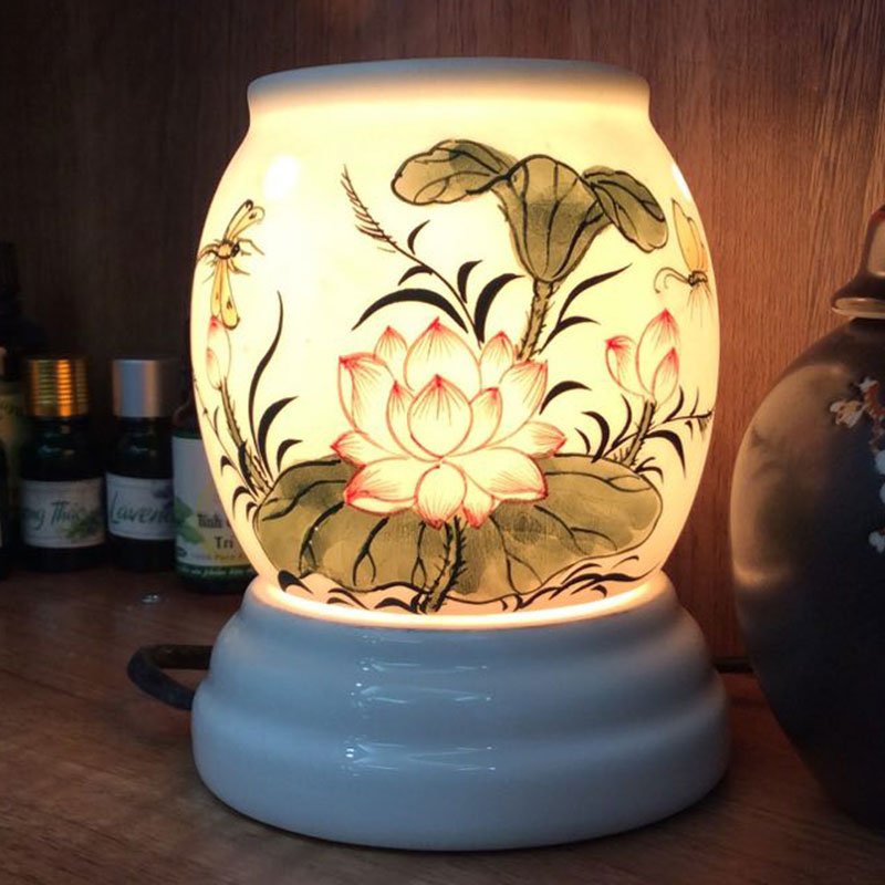 Đèn xông tinh dầu size nhỏ là đèn gốm thấu quang được sản xuất thủ công tại Làng Gốm Bát Tràng. Gia Lâm, Hà Nội.