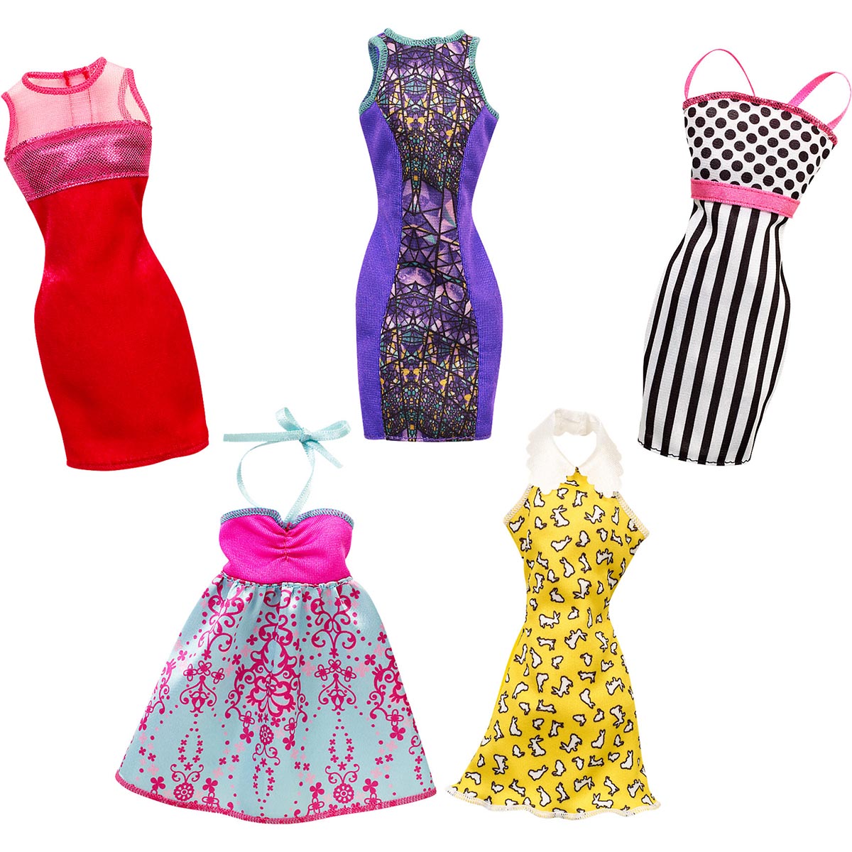 Các mẹ có thể lựa chọn một trong năm bộ đầm thời trang nổi bật này để các bé nhà mình tha hồ thay đổi trang phục cho người bạn đáng yêu – búp bê Barbie. Đây là dạng đồ chơi rất thú vị và kích thích trí tưởng tượng phong phú, sự sáng tạo, giúp bé yêu của bạn quan tâm và yêu thương mọi người xung quanh hơn.