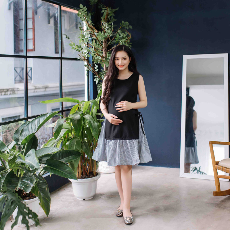 Đầm bầu Emum cho Mẹ có thiết kế sọc đen tinh tế
