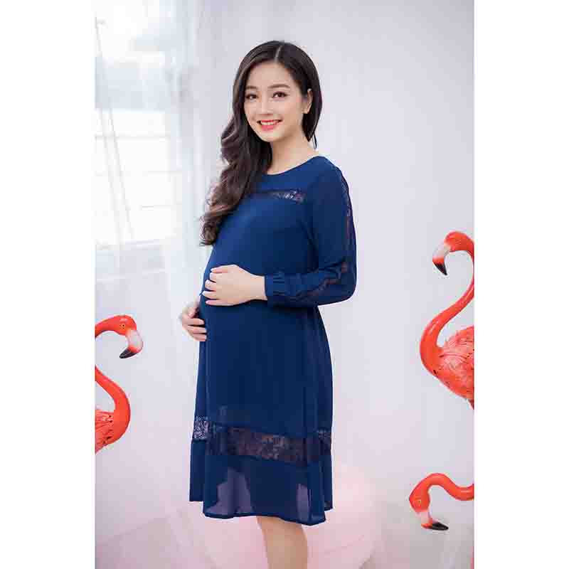 Đầm bầu vải tằm tay dài phối ren xanh Emum với chất vải mát, thướt tha kết hợp với ren mang đến nét điệu đà cho mẹ bầu. Đầm thiết kế phối ren trước ngực và dọc cánh tay, mang đến nét trẻ trung năng động, thích hợp cho mẹ đi làm, đi dạo.