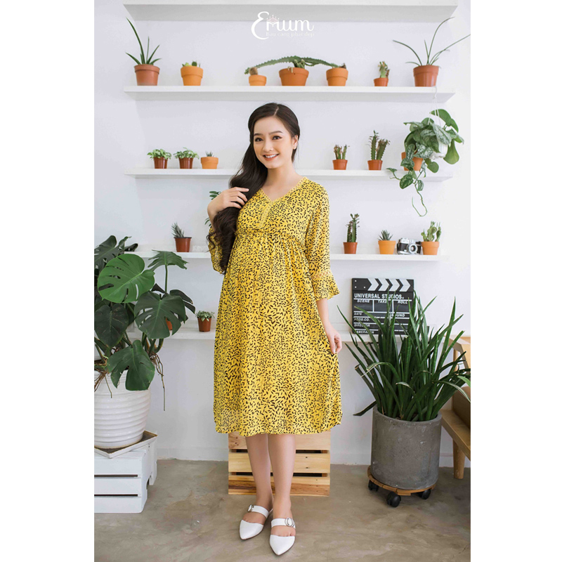 Đầm bầu là một trang phục mà Mẹ bầu nào cũng từng mặc qua bởi loại trang phục này được cách tân về độ rộng, kích thước sao cho phù hợp với vòng bụng của Mẹ bầu, khác hẳn với các loại trang phục thông thường. Nếu các Mẹ đang băn khoăn không biết lựa chọn loại trang phục bầu phù hợp hãy để chúng tôi giới thiệu đến bạn chiếc Đầm bầu von cổ tim phối ren cổ vàng Emum nhé. Sản phẩm được thiết kế đơn giản nhưng trên vải được in vô số các họa tiết vô cùng bắt mắt giúp cho Mẹ bầu trở nên nổi bật hơn trong các buổi họp mặt hay dạ tiệc