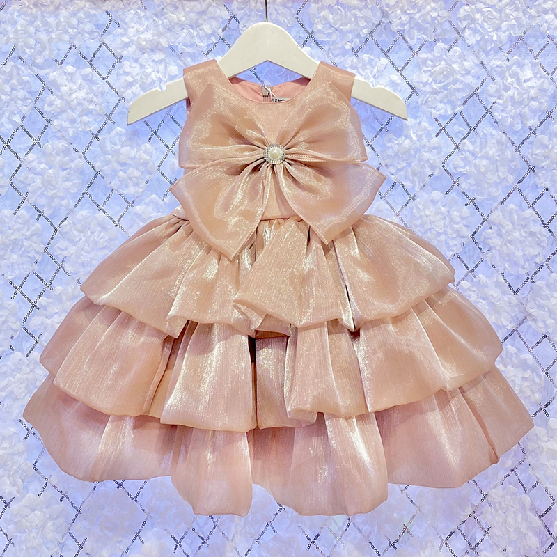 - Thiết kế nổi bật với nơ to trước ngực cùng tầng xếp ly nhẹ nhàng, bé nhất định sẽ tỏa sáng như một thiên thần nhỏ