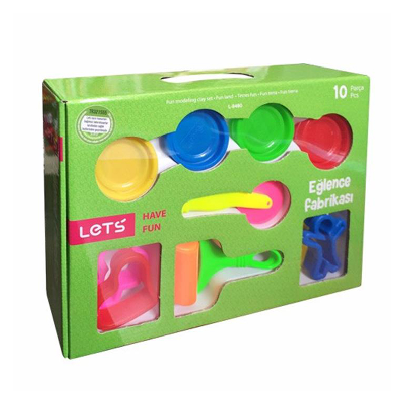 Bộ đồ chơi đất nặn Nhà máy vui nhộn LET- L8480 bao gồm 4 hộp đất nặn có màu sắc tươi sáng như màu xanh dương bắt mắt, màu đỏ nổi bật, màu xanh lá cây trẻ trung và màu vàng cá tính. 4 khuôn hình cực kỳ dễ thương như hình trái tim màu đỏ, hình cậu bé màu xanh dương, hình chiếc lá màu vàng và hình xe ô tô màu hồng nhẹ nhàng. Ngoài ra, khi sở hữu bộ sản phẩm đồ chơi đất nặn Nhà máy vui nhộn, bé còn được tặng thêm 2 dụng cụ lăn bột và cắt bột tiện dụng, giúp bé dễ dàng tạo hình và cắt bỏ những phần đất nặn còn dư. Phần nắp hộp còn có chức năng tạo hình thành những con vật rất dễ thương và ngộ nghĩnh.