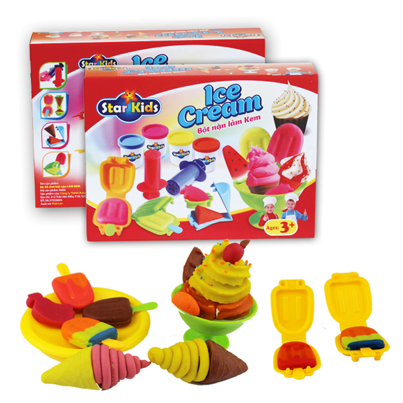 Đất nặn Star Kids K002 gồm 4 hộp đất nặn lớn với các khuôn nhựa để bé có thể tạo ra các que kem nhiều màu sắc như Kem ốc quế vị dâu, socola, vani....Sản phẩm được làm từ chất liệu bột mì an toàn, dành cho bé từ 3 tuổi trở lên. Hàng Thái Lan nên mẹ yên tâm về xuất xứ và chất lượng nhé.