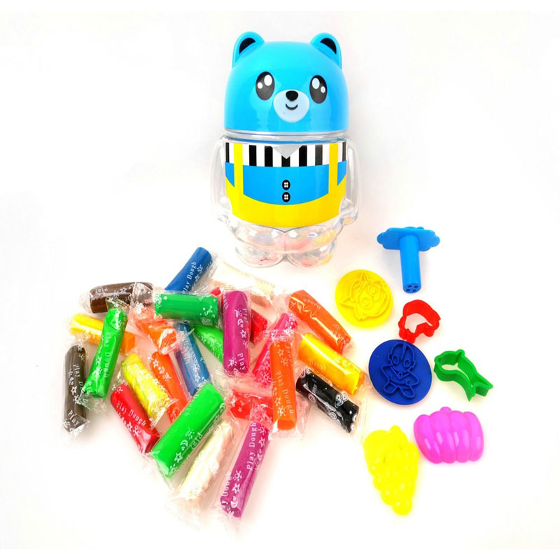 - Có nhiều thỏi đất với màu sắc khác nhau, để bé có thể nặn theo khuôn hoặc tạo theo trí tưởng tượng
