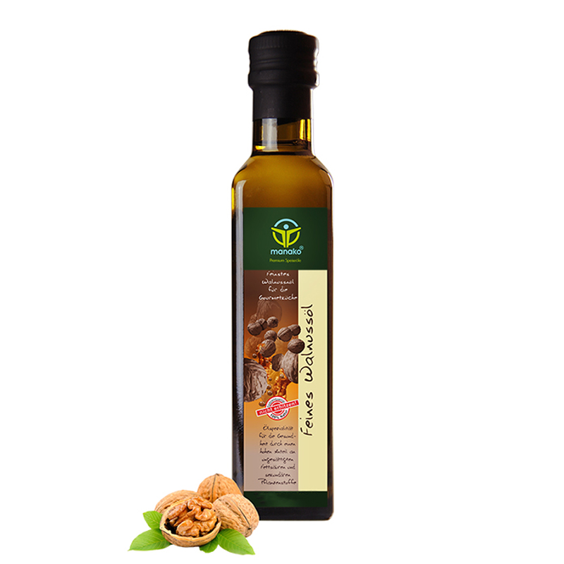 Dầu óc chó Manako 250ml giàu omega-3 và các vi chất tự nhiên đặc biệt tốt cho trẻ trong giai đoạn ăn dặm, phụ nữ mang thai. Sản phẩm được chiết xuất từ quả óc chó tự nhiên, bằng công nghệ tiên tiến giữ nguyên hương vị, vitamin của sản phẩm.
