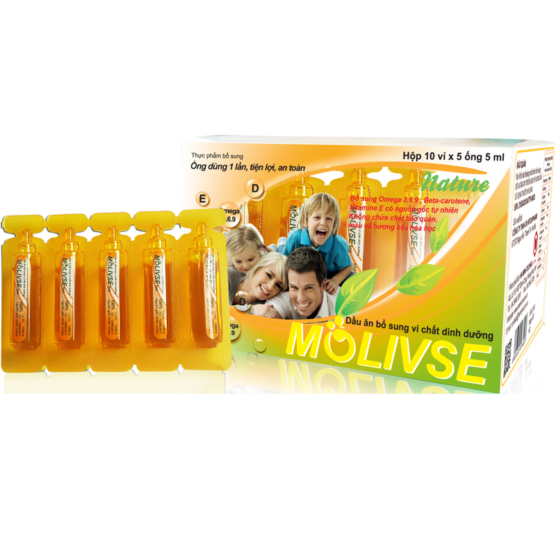 Dầu ăn vi chất dinh dưỡng MOLIVSE được đóng dưới dạng ống 5ml, đơn giản và tiện lợi hơn khi sử dụng cho các mẹ. Các mẹ có thể dễ dàng mang theo Dầu ăn vi chất MOLIVSE cho con khi tới lớp, đi chơi hay dã ngoại cùng gia đình.
