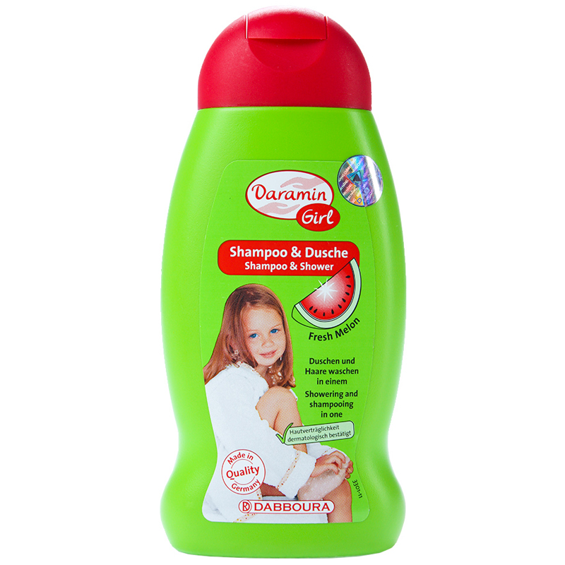 Dầu gội & sữa tắm Daramin với chiết xuất từ các thành phần tự nhiên: tía tô đất, cỏ đuôi ngựa, hạt dẻ,… cùng hương dưa tươi mát chăm sóc toàn diện da và tóc cho bé, ngăn ngừa da khô, bảo vệ tóc khỏi gàu và phục hồi hư tổn. Sản phẩm có mùi hương dưa hấu thơm mát, dành cho bé gái từ 3-13 tuổi.
