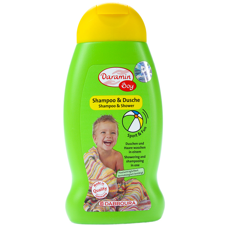 Dầu gội & sữa tắm Daramin Kids Boy được chiết xuất từ các thành phần tự nhiên: tía tô đất, cỏ đuôi ngựa, hạt dẻ,… cùng hương thể thao năng động chăm sóc toàn diện da và tóc cho bé, ngăn ngừa da khô, bảo vệ tóc khỏi gàu và phục hồi hư tổn. Sản phẩm được viện da liễu Đức cấp chứng nhận thích hợp cho bé trên từ 3 tuổi trở lên.