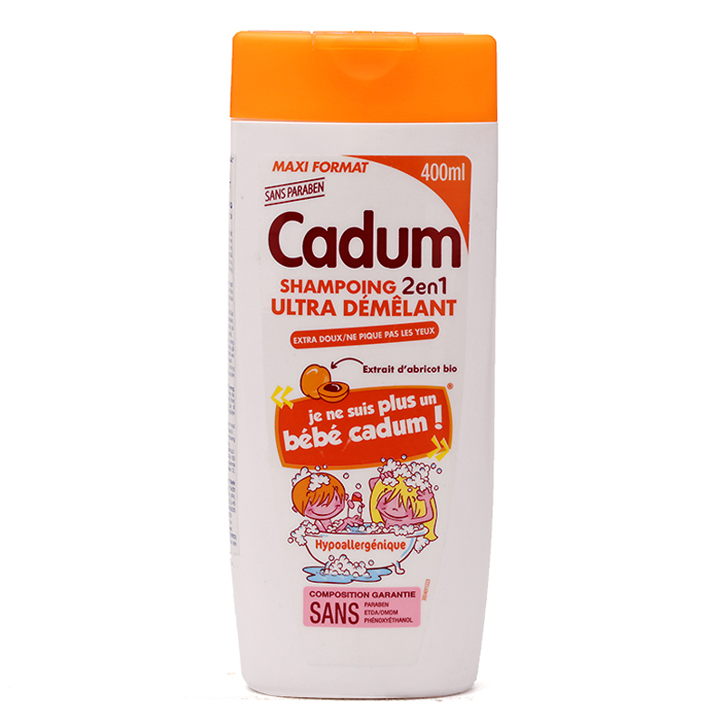 Dầu gội trẻ em Cadum hương mơ (400ml) với các thành phần được chiết xuất từ thiên nhiên, giúp lấy đi mồ hôi, bụi bẩn một cách nhẹ nhàng, an toàn với làn da non nớt của bé. Sản phẩm có hương mơ dễ chịu, dành cho trẻ từ 1 tuổi trở lên.