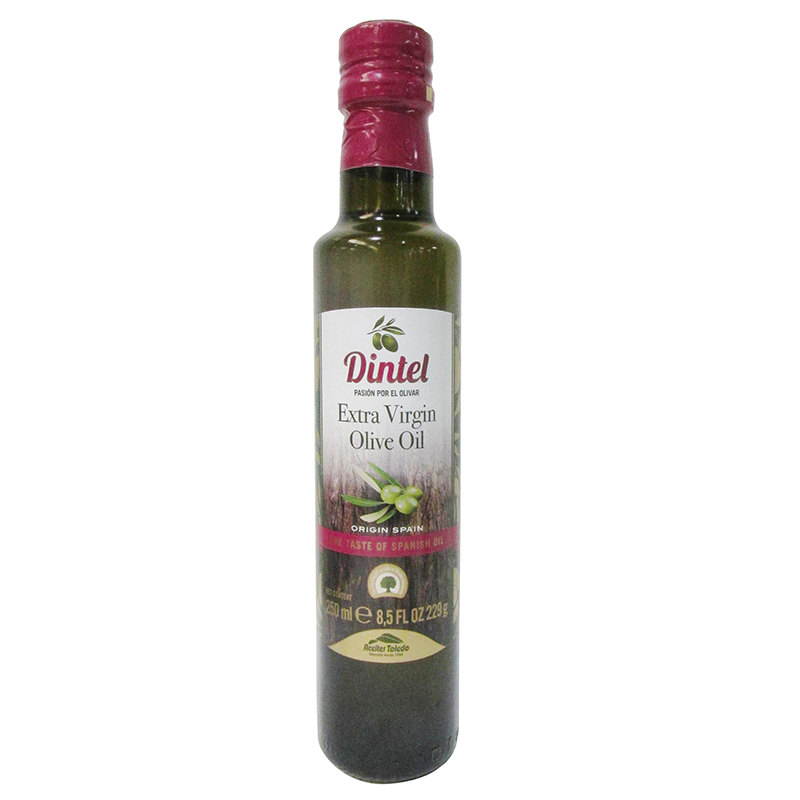 Dầu Olive Dintel siêu nguyên chất 250ml là sản phẩm có được trong lần ép đầu tiên từ trái Olive, có nồng độ A-xít thấp, giàu Vitamin E, chứa chất chống Oxy hóa tự nhiên. Sản phẩm dùng trộn ăn ngay trực tiếp hoặc chế biến các món ăn hàng ngày.