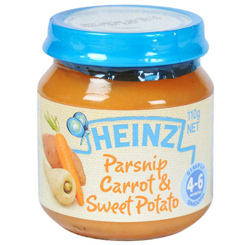 dinh dưỡng đóng lọ Heinz củ cải, cà rốt, khoai lang chiết xuất rau củ chứa nhiều dinh dưỡng và khoáng chất, hương vị thơm ngon, thích hợp cho trẻ từ 4 tháng tuổi trở lên