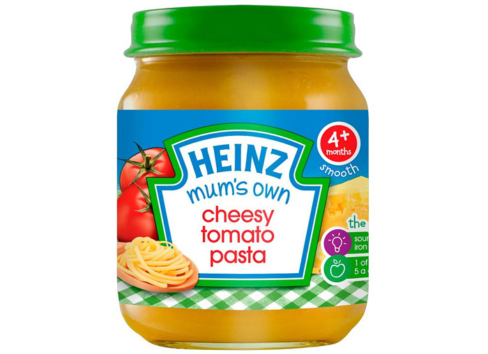 Dinh dưỡng đóng lọ Heinz cheesy tomato pasta dành cho bé từ 4 tháng trở lên