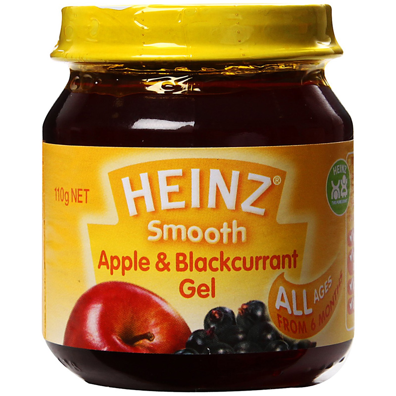 Dinh dưỡng đóng lọ Heinz táo và nho đen là thức ăn bổ sung dành cho bé từ 6 tháng trở lên.