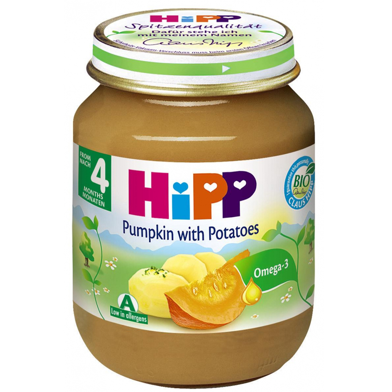 dinh dưỡng đóng lọ Hipp Bí, Khoai tây gồm rau tổng hợp 85% (bí tây, khoai tây), nước, dầu hạt cải, là thức ăn dặm, thay thế bữa ăn cân bằng dinh dưỡng dành cho trẻ nhỏ từ 4 tháng tuổi trở lên, rất an toàn với trẻ có nguy cơ dị ứng thức ăn cao. Sản phẩm có chứa các khoáng chất và chất xơ giúp hệ tiêu hóa hoạt động tốt hơn và Omega-3 giúp phát triển trí não.
