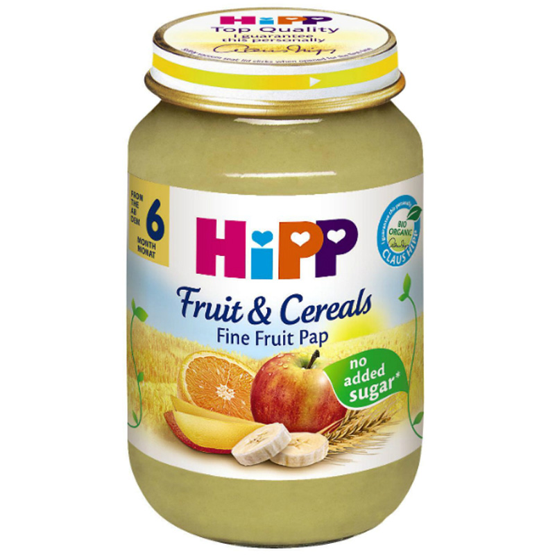 Dinh dưỡng đóng lọ Hipp chuối, cam, táo, xoài 190g gồm 95% hoa quả (nước ép táo nồng đồ axit thấp, chuối, xoài, nước cam), ngũ cốc 5% (ngũ cốc lúa mì và ngũ cốc yến mạch), Vitamin C, là thức ăn dặm bồi bổ cơ thể cho trẻ nhỏ từ 6 tháng tuổi trở lên. Sản phẩm bổ sung các khoáng chất và nguyên tố vi lượng, giàu Vitamin C, chất xơ giúp cho hệ tiêu hóa của trẻ hoạt động tốt hơn, ngừa táo bón. Sản phẩm có vị dịu, không chứa chất bảo quản, không phẩm màu, không chứa Gluten