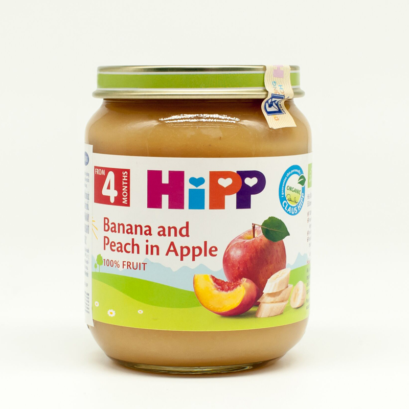 Dinh dưỡng đóng lọ Hipp với mùi vị thơm ngon tự nhiên của chuối, đào, táo