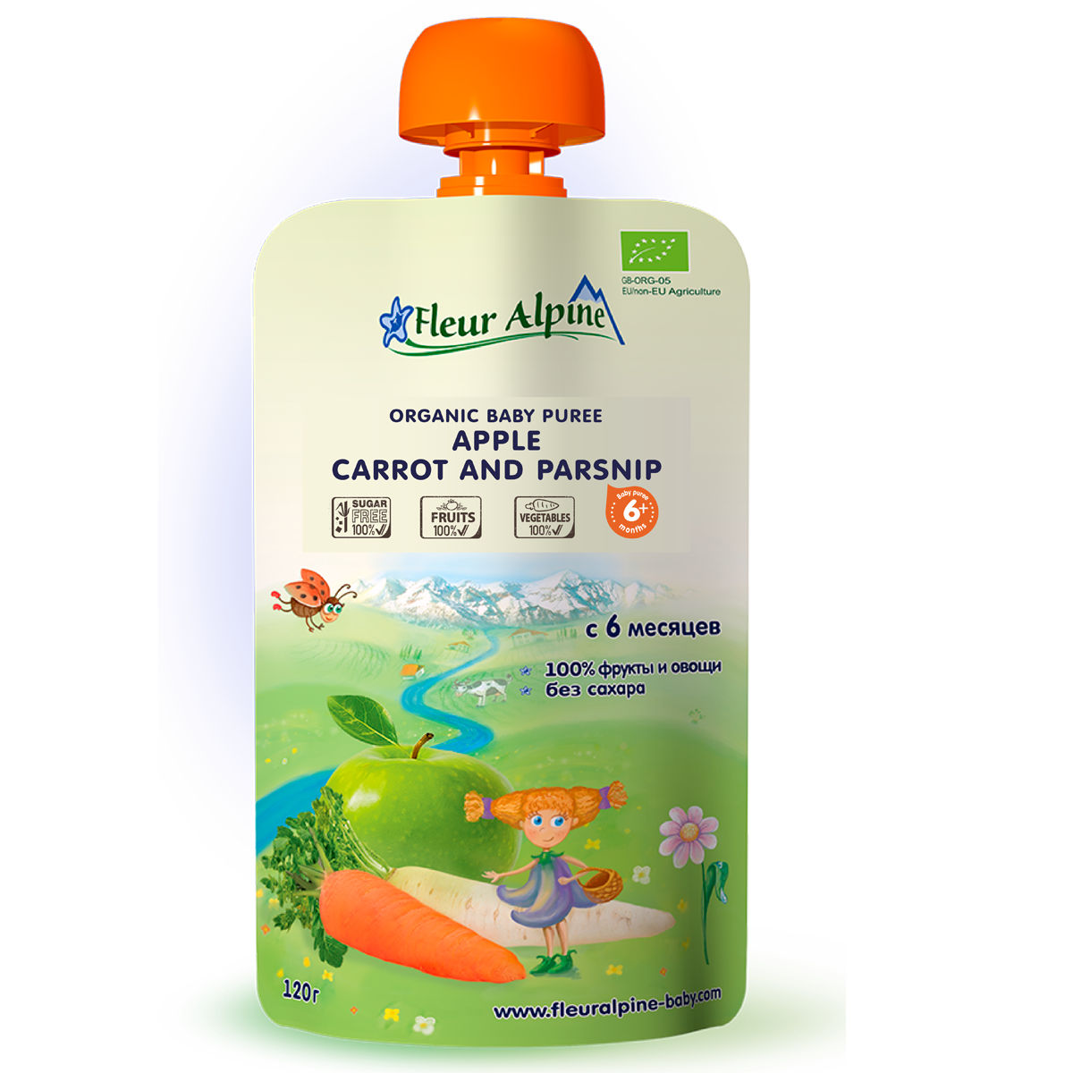 Dinh dưỡng trái cây Fleur Alpine Organic Táo, cà rốt, củ cải không chứa chất bảo quản, được nghiền từ 100% trái cây tự nhiên, sẽ là thực phẩm bổ sung dành cho bé từ 6 tháng trở lên. Đặc biệt, tất cả các nguyên liệu đều đáp ứng tiêu chuẩn Organic, hoàn toàn hữu cơ, thân thiện với môi trường, an toàn cho bé yêu.