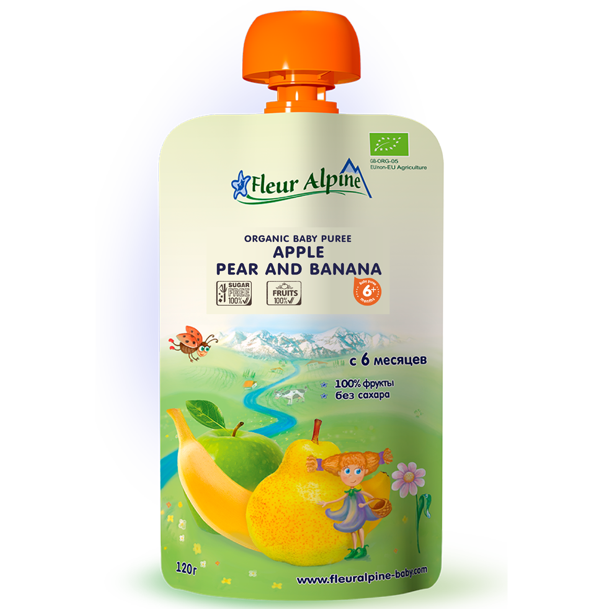 Dinh dưỡng trái cây Fleur Alpine Organic Táo, lê, chuối là tuýp trái cây nghiền tươi ngon, giàu dinh dưỡng, cuốn hút trẻ em mọi lứa tuổi từ nhiều quốc gia trên thế giới. Hình dáng thiết kế dạng tuýp, thuận tiện cho bé mang tới lớp và sử dụng vào giờ ăn trưa hoặc ăn nhẹ bữa chiều.