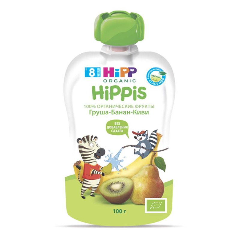 Dinh dưỡng trái cây nghiền hữu cơ HiPPiS Organic (Kiwi, Lê, Chuối) sử dụng 100% thành phần trái cây hữu cơ organic theo tiêu chuẩn châu Âu (EU), là thức ăn dặm bổ sung hoa quả trong chế độ ăn hàng ngày của trẻ nhỏ, đặc biệt dành cho bé từ 4 tháng trở lên.