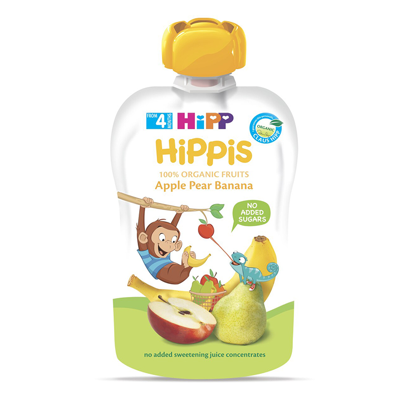 Dinh dưỡng trái cây nghiền hữu cơ HiPPiS Organic (Táo, Lê, Chuối) là thức ăn dặm, đáp ứng nhu cầu dinh dưỡng hàng ngày và được bổ sung vitamin, khoáng chất cho bé khi bắt đầu ăn dặm. Sản phẩm được làm từ 100% trái cây nghiền Organic, không bổ sung thêm đường.