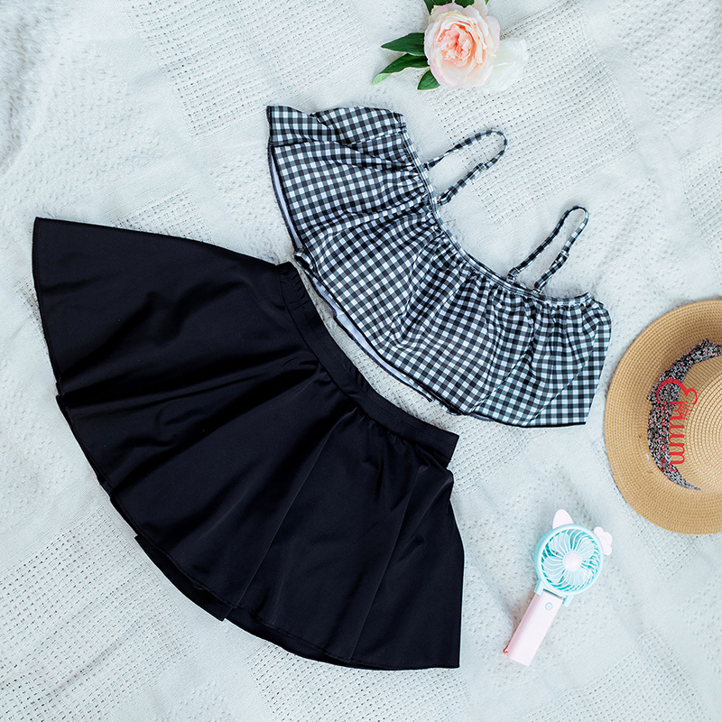 - Sản phẩm thiết kế 2 mảnh với họa tiết ca rô nổi bật