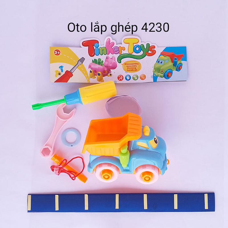Đồ chơi ô tô lắp ghép 4230 gồm các chi tiết được nối với nhau bằng ốc vít để tạo thành chiếc ô tô với thùng đựng phía sau. Sản phẩm được làm từ chất liệu nhựa nguyên sinh với các góc cạnh trơn nhẵn, bé có thể chơi nhiều trò thú vị với món đồ chơi này.