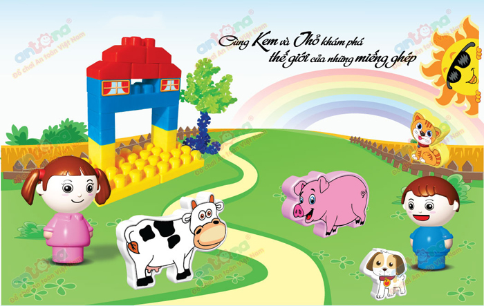 - Bộ đồ chơi lấy chủ đề NÔNG TRẠI là chủ đề khá gần gũi, sinh động, sẽ giúp bé không chỉ có thêm 2 người bạn mới là KEM và THỎ mà còn giúp bé khám phá thế giới xung quanh một cách thích thú thông qua việc tạo dựng Nông trại và làm quen, giao lưu và tìm hiểu tính cách của từng nhân vật.