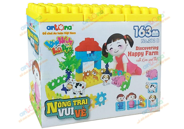 - Gồm 163 chi tiết, với 2 quyển sách hướng dẫn ( 1 quyển giúp bé làm quen các nhân vật, 1 quyển hướng dẫ n bé tạo ra những Nông trại của riêng mình)