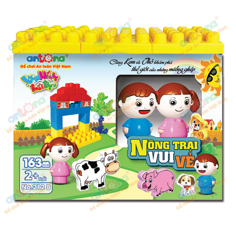 Đồ chơi Antona No.212B - Nông trại vui vẻ (163 chi tiết) được làm từ chất liệu nguyên sinh, với chủ đề nông trại vui vẻ, giúp bé làm quen với các nhân vật Kem, Thỏ, cũng như các mô hình ngộ nghĩnh. Qua quá trình lắp ghép, xếp hình bé sẽ rèn luyện trí thông minh, tính logic cũng như phát triển khả năng giao tiếp của bé khi chơi cùng bạn bè.