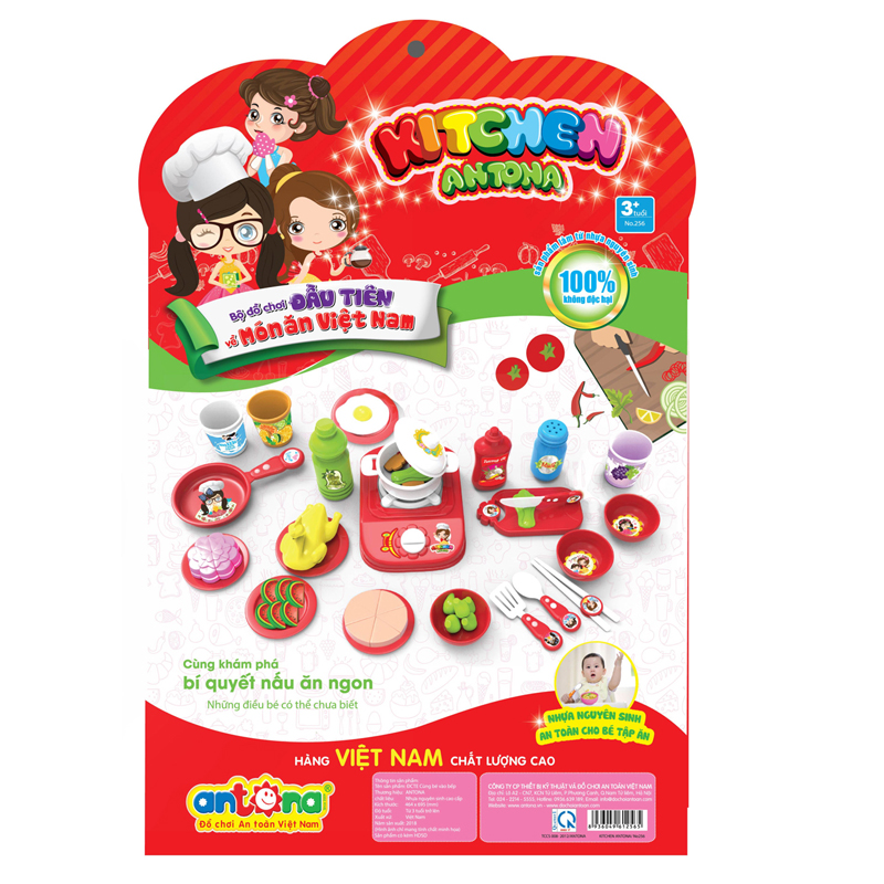 Đồ chơi Antona No.256 - Cùng bé vào bếp (màu đỏ) được thiết kế mô phỏng theo các món ăn Việt và dụng cụ nhà bếp. Qua đó, bé sẽ được trang bị những kỹ năng cơ bản trước khi sử dụng các vật dụng nhà bếp của mẹ và những bí kíp nhỏ để món ăn thêm ngon và hấp dẫn hơn.