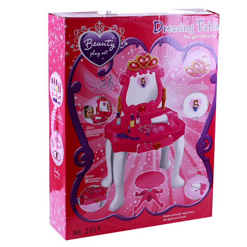 Đồ chơi bàn trang điểm 2019 màu hồng dành cho bé gái trên 3 tuổi. Đây là món đồ chơi được nhiều bé gái yêu thích, giúp bé thoả sức phát huy ý thích trang điểm của mình, giúp bé nhân thức về việc chăm sóc bản thân ngay khi còn bé. Bộ sản phẩm gồm 1 bàn, 1 ghế và các chi tiết khác bằng nhựa an toàn.