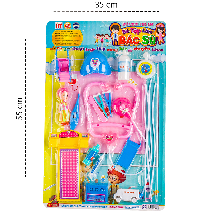 Đồ chơi bác sĩ nói chuyện HT7813 gồm những thiết bị y tế quen thuộc với các bác sĩ như: Kim tiêm, kéo, búa thử phản xạ, ống nghe, dao, kéo…đặc biệt là có 1 bạn búp bê để bé có thể thăm khám. Đồng thời, bộ đồ chơi sẽ giúp bé hiểu về nghề bác sĩ cũng như không còn lo sợ khi ba mẹ cho đi khám bệnh.