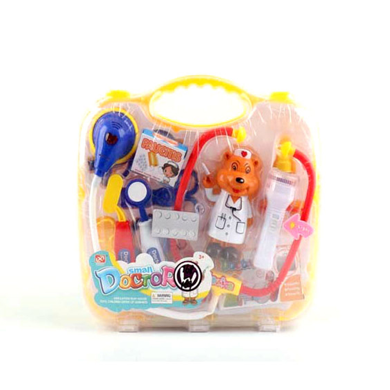 - Bộ đồ chơi bao gồm các dụng cụ thường dùng trong y tế như: ống nghe, mắt kính, ống tiêm, hộp thuốc...