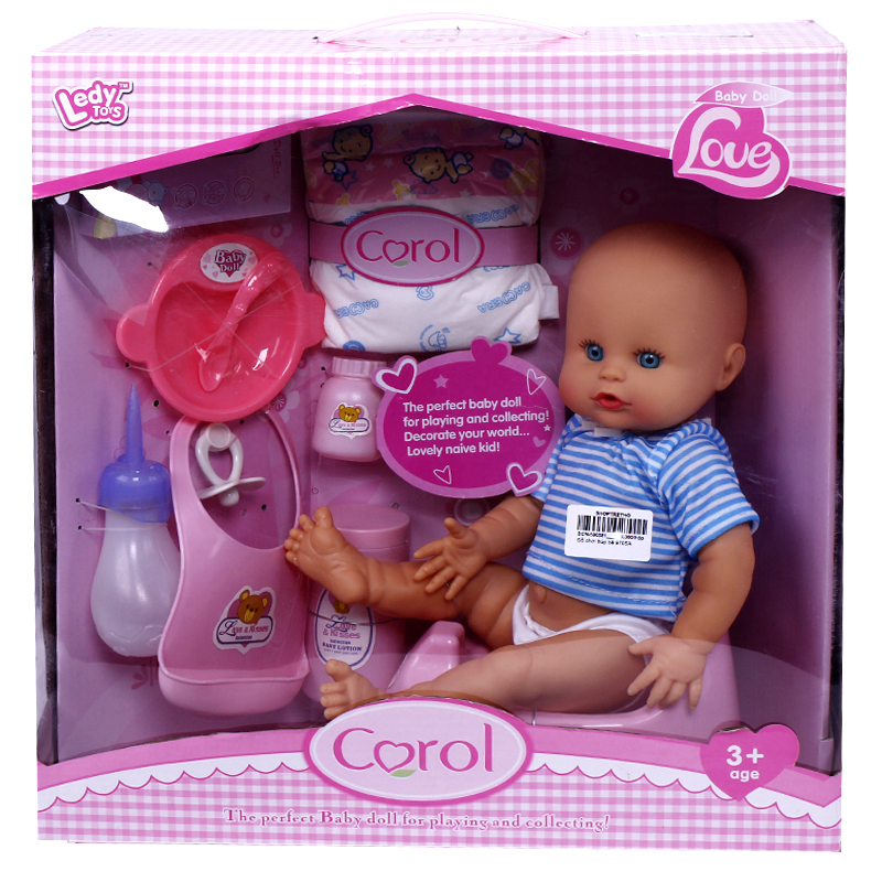 - Bộ đồ chơi gồm : 1 em búp bê, 1 yếm ăn, 1 bỉm, núm ty, bộ đồ ăn dặm