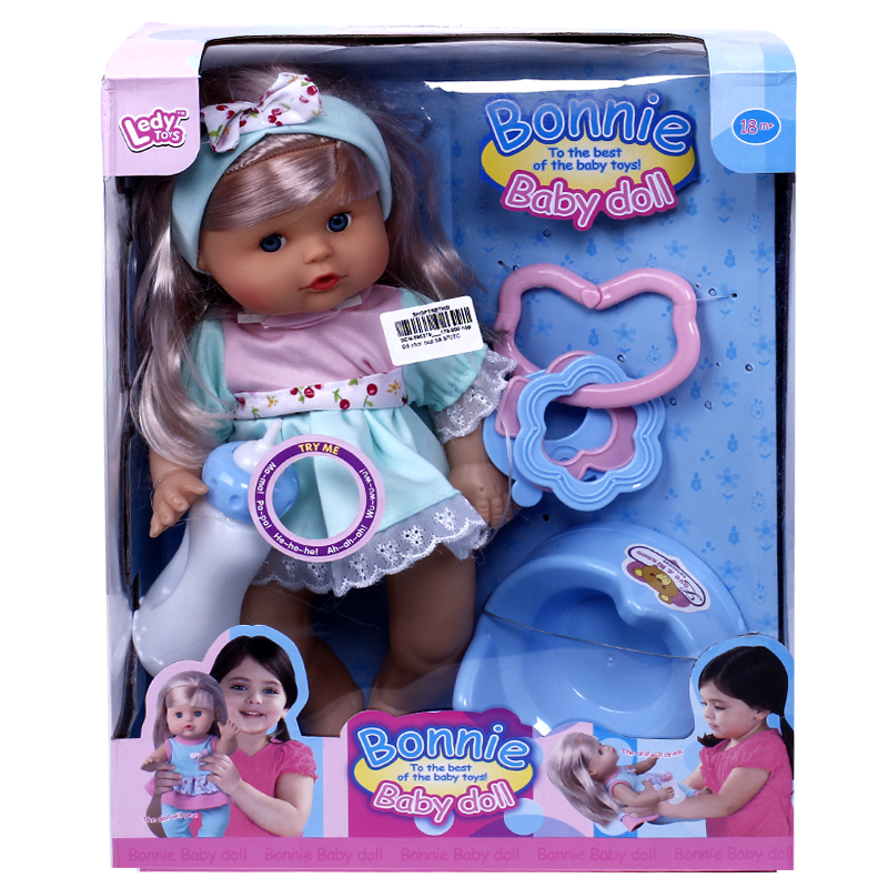 Đồ chơi búp bê Bonnie 9707C với thiết kế mô phỏng 12 âm thanh của trẻ sơ sinh, bé có thể tập nói theo những từ đơn giản như mama, papa, zeze,...giúp kích thích khả năng ngôn ngữ ở bé. Bộ sản phẩm gồm: 1 búp bê, 1 bình sữa, 1 cắn răng và 1 bô vệ sinh cho các bé chơi trò đóng vai đầy thú vị cũng như thể hiện khả năng chăm sóc búp bê.