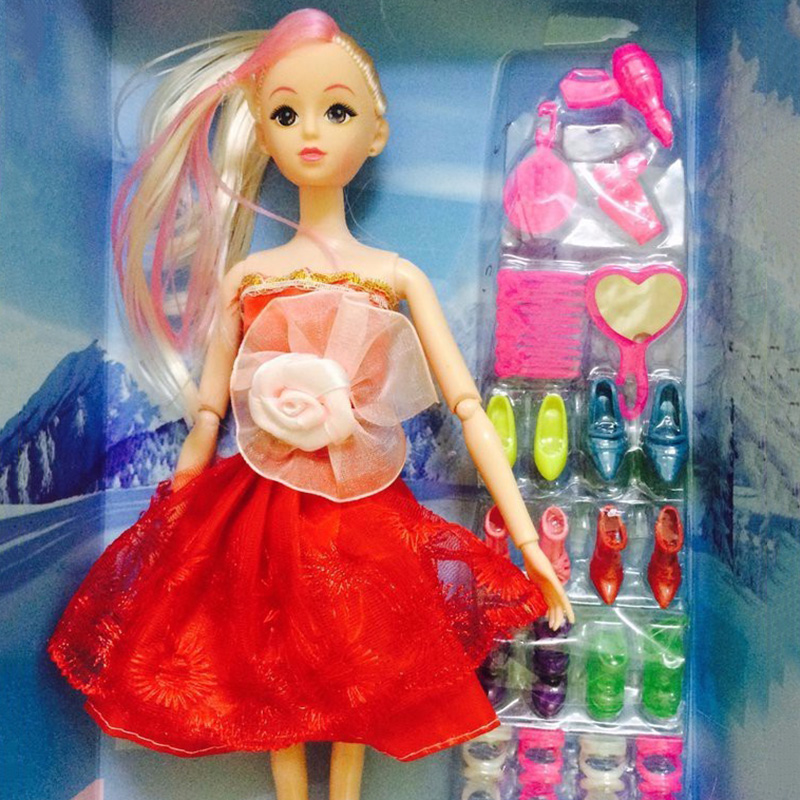 Bộ sản phẩm gồm: 1 búp bê + 1 bộ gương lược, làm tóc + nước hoa + Bộ sưu tập giày 8 đôi khác nhau.