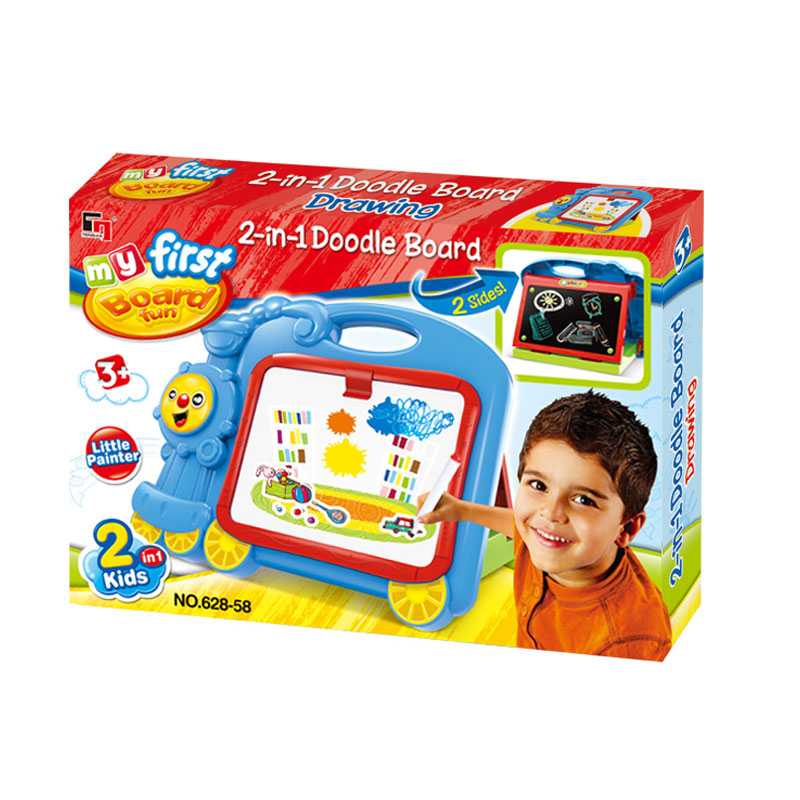 Đồ chơi bảng viết VBCare VBC-628-58 được làm từ chất liệu nhựa an toàn, với thiết thế hình đầu tàu ngộ nghĩnh, dành cho bé từ 3 tuổi trở lên. Bản có thiết kế vẽ 2 mặt, kèm theo bút viết (có đầu xóa) và 4 viên phấn màu để bé có thể thỏa sức vẽ các bức tranh, học chữ...Bảng có thể dựng lên để bé ghim giấy lên làm thành bảng vẽ tiện lợi.