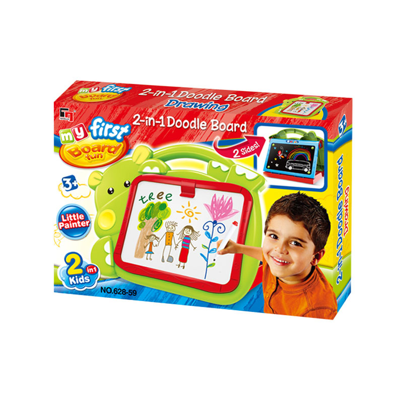 - Bộ sản phẩm gồm: 1 bảng viết 2 mặt + 2 bút vẽ + 4 viên phấn màu