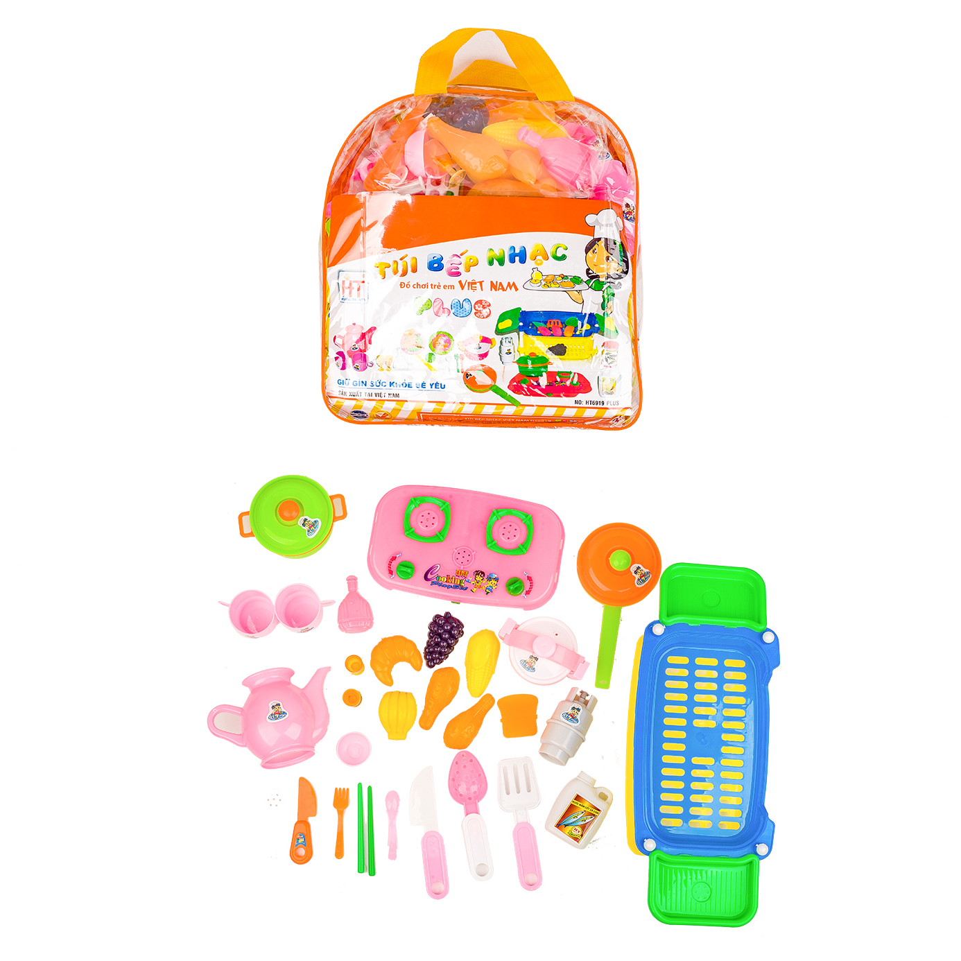 - Bộ sản phẩm bao gồm: 1 bộ bếp có đèn phát nhạc Việt, 1 bộ muỗng nĩa, 1 bộ bình trà đồ dùng (vui lòng xem hình chi tiết sản phẩm)