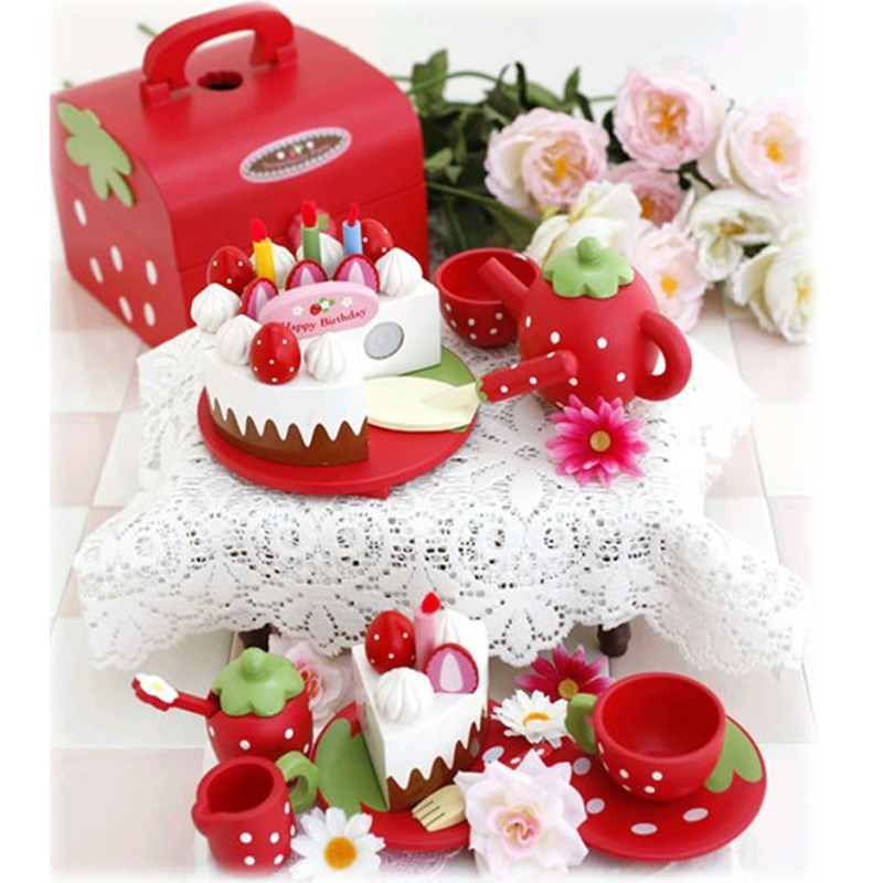 Đồ chơi gỗ bộ tiệc dâu tây Mother Garden 022B mô tả những bánh nến, đặc trưng về kiểu dâu tây cho bé có cái nhìn toàn diện về các dụng cụ ấm trà trong gia đình bạn hàng ngày.