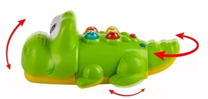 - Với 4 nút là 4 giai điệu bài hát quen thuộc của bé. Khi nhạc kêu là bạn cá sấu bò theo điệu nhạc rất đáng yêu.