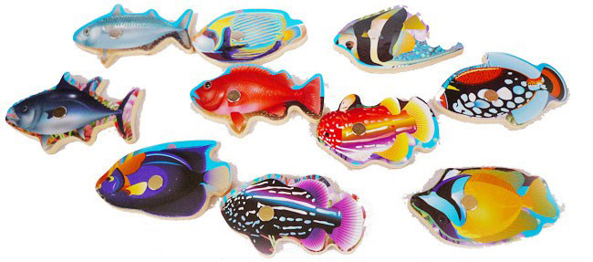 - Sản phẩm có màu sắc bắt mắt với rất nhiều loại cá khác nhau, bố mẹ có thể nói cho bé biết tên những loại cá này.