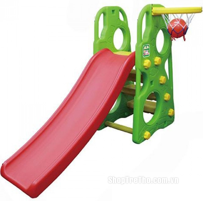 - Chơi bóng rổ: Cầu trượt cho bé được gắn thêm bóng rổ, kiểu dáng chắc chắn, dễ ráp.