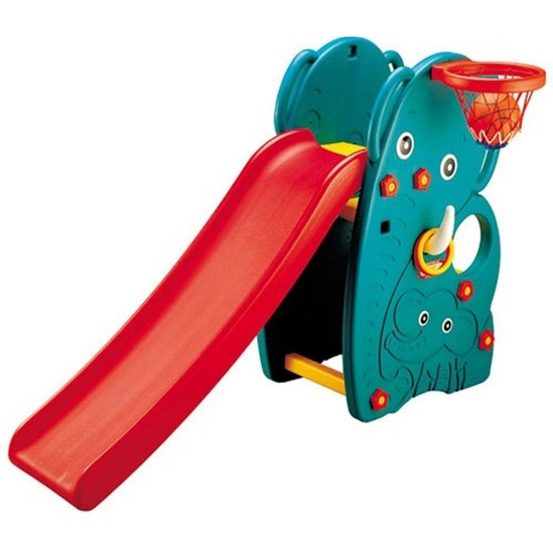 Đồ chơi cầu trượt hình con voi JM-765 với thiết kế chắc chắn, bằng chất liệu nhựa PE an toàn, tích hợp nhiều tính năng: cầu trượt, leo thang, ném bóng rổ...giúp bé phát triển thể chất cũng như trí tuệ. Ván trượt bằng nhựa an toàn, hình lượn sóng có tác dụng giảm tốc, mặt ván có độ sần, tăng masat phù hợp và an toàn cho trẻ nhỏ.