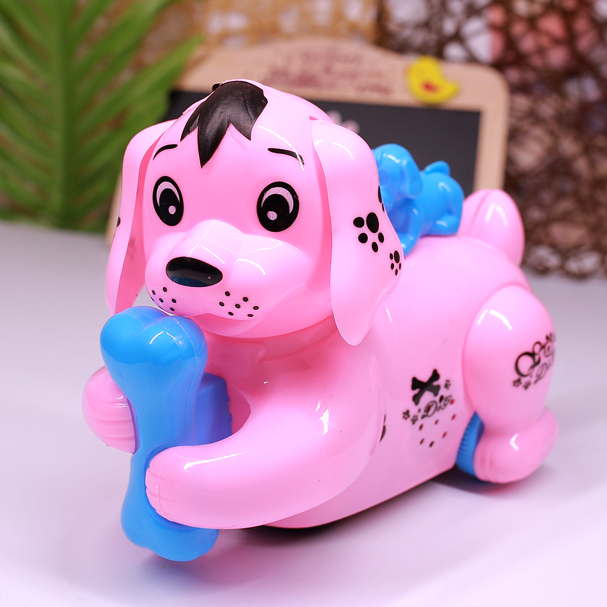 - Khi bấm nút, chú chó sẽ phát ra tiếng nhạc, ánh sáng, đồng thời chân và mông của chú chó chuyển động 2 bên và tiến lên phía trước