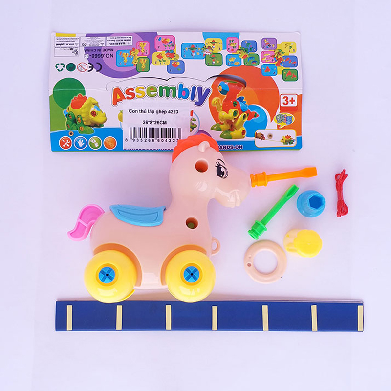 Đồ chơi chú ngựa lắp ghép 4223 gồm các chi tiết được nối với nhau bằng ốc vít để tạo thành chú ngựa con ngộ nghĩnh. Sản phẩm được làm từ chất liệu nhựa nguyên sinh với các góc cạnh trơn nhẵn, bé có thể chơi nhiều trò thú vị với món đồ chơi này.