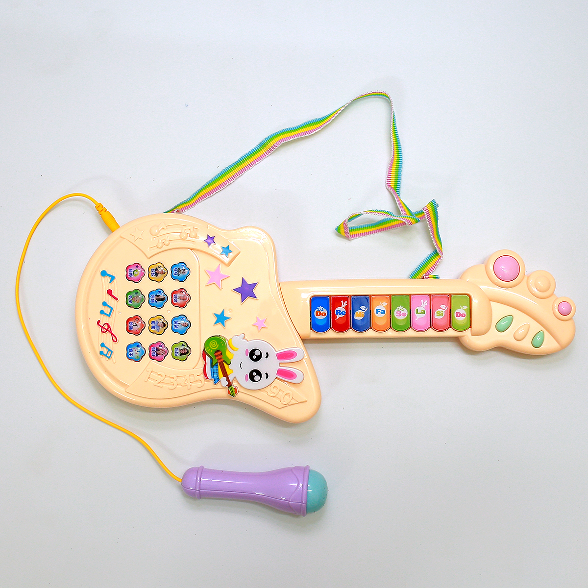 - Có dây đeo để bé cầm và hơn nữa có mic kèm theo, để bé đóng vai là rocker thực thụ